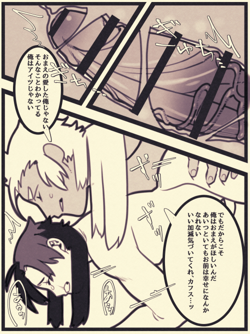 現代世界に飛ばされちゃって路銀稼ぎをするためにAV出演しちゃいそうになってるカフス。というなかなかに濃ゆい設定で描いた絵。ボタンによく似た男優とかに心ひかれちゃうみたいなとこまで考えてた。